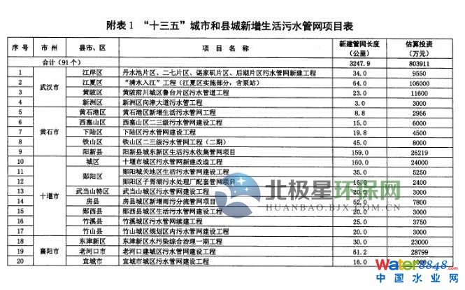附件:湖北省“十三五”城鎮(zhèn)污水處理及再生利用設(shè)施建設(shè)規(guī)劃