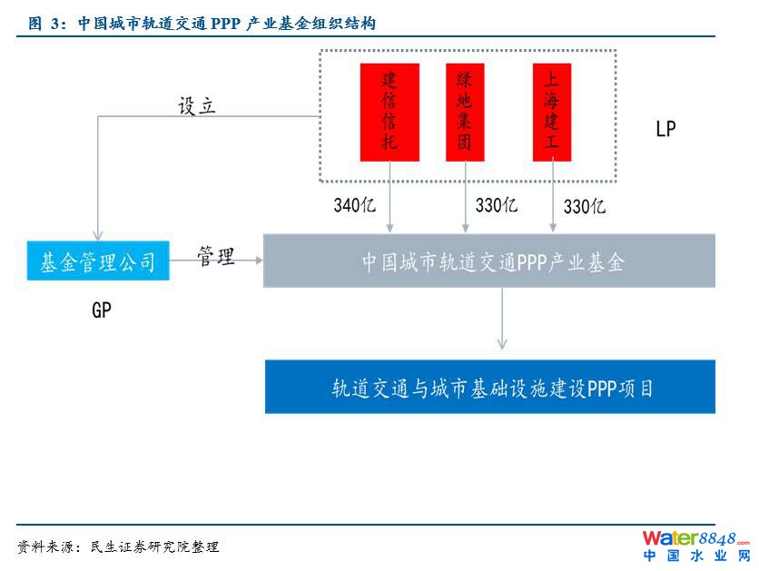 中國城市軌道交通PPP產(chǎn)業(yè)基金由綠地集團、建設(shè)銀行牽頭發(fā)起,以有限合伙企業(yè)形式設(shè)立,由綠地金融、建工投資、建信信托三方成立的基金管理公司擔(dān)任普通合伙人、執(zhí)行合伙人,并由發(fā)起人、戰(zhàn)略合作方作為有限合伙人,總規(guī)模為1000億元,分期發(fā)行,首期規(guī)模240億元,期限為5+3年。綠地集團作為發(fā)起人,將優(yōu)先向軌道交通基金推薦符合軌道交通基金投向、偏好的投資項目。同時,如軌道交通基金所投項目涉及周邊物業(yè)開發(fā),綠地集團將享有優(yōu)先選擇權(quán);上海建工將嚴(yán)控項目施工質(zhì)量、施工進度以及施工安全;建信信托將實現(xiàn)軌道交通基金投融資運作。中國建設(shè)銀行上海分行則組織保險長期資金和建行理財資金對接優(yōu)先級投資,并優(yōu)先牽頭后續(xù)相關(guān)項目銀團貸款。