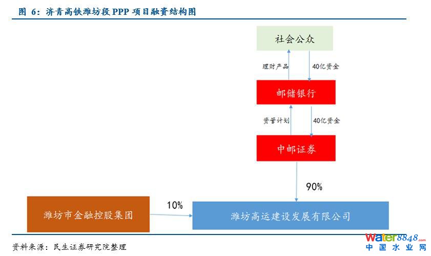 如濟青高鐵濰坊段PPP項目,郵儲銀行以不高于6.69%/年的收益率成功中標(biāo),但考慮到銀行理財資金無法直接進行股權(quán)投資,郵儲銀行用40億理財資金認(rèn)購中郵證券發(fā)行的資管計劃,借道參與PPP項目。