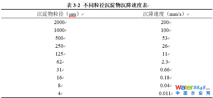 理想狀況下不同粒徑沉淀物沉降速度見(jiàn)下表: