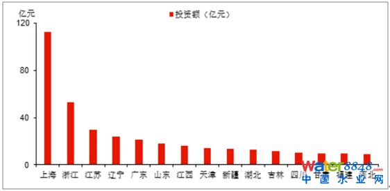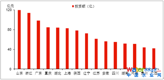我國“十三五”城鎮(zhèn)污水處理能力規(guī)劃新增規(guī)模的投資額前列省市