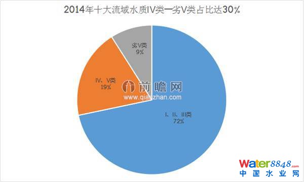 其三,我國水污染問題嚴(yán)重,2014年十大流域水質(zhì)IV類—劣V類累計(jì)占比達(dá)30%,接近三分之一。