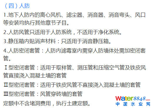 Ⅰ型防水套管適用于鑄鐵管和非金屬管;Ⅱ型防水套管適用于鋼管;Ⅲ型防水套管適用于鋼管預(yù)埋,將翼環(huán)直接含在鋼管上。