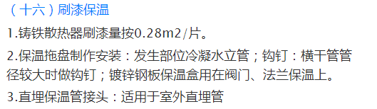 2.保溫常規(guī)做法-給水:防結(jié)露保溫,熱水:保溫,消防:不保溫,冷凍水:連閥門都需保溫,冷卻水:按設(shè)計(jì)要求,未要求可以不作。一般吊頂里的管道均需保溫。