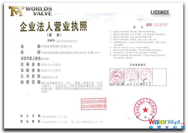 TIANJIN WORLDS VALVE LTD. is located at TIAN JIN BIN HAI  where is only 3 kilometers away from Tianjin Xingang Port,TIANJIN WORLDS VALVE LTD. is a specialized manufacture enterprise that focuses producing, installing, sale and service. The main products include Center Line Butterfly Valve, Flanged Butterfly Valve, Metal Butterfly Valve, Check Valve, Gate Valve, Waterpower Control Valve, Microresistance Slow Close Check Valve, Multi-function Pump Control Valve and their series products. Moreover, we can produce control valve and pressure reducing valve that are different materials, pressures, specifications, actuation ways. Our products include more than 50 serials and 1200 species, and the annual production output is more than 8.000 metric tons. WORLDS valves have been selling well all over China and exporting to Europe, America and other countries and areas, which are used widely in water supply and drainage, electric power, petrol chemical industry, metallurgy and other trades. Our products are quite creative, good quality, cheap price and excellent credit, so customers trust our products.
