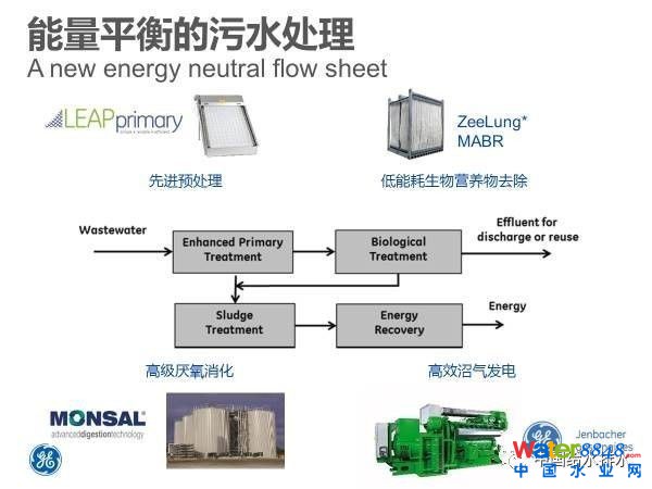 大家好,我今天下午介紹的主題是基于膜法的污水廠升級改造方案,主要跟大家分享兩個技術(shù):第一個是MABR技術(shù),第二個是MBR技術(shù)以及升級版的MACmbr技術(shù)。首先從能量平衡角度而言,污水處理廠可以看如何實現(xiàn)整體全廠能量平衡自給自足,這是典型能量平衡的污水處理廠四個單元,預(yù)處理采用LEAPprimary可代替?zhèn)鹘y(tǒng)的初沉池和超細格柵(1mm膜格柵),通過物化方式將有機物和懸浮物進行一定去除,以減輕后續(xù)生化處理的負荷以及更有效地保護膜系統(tǒng)。關(guān)于生化處理有低能耗MBR技術(shù)和強化去除營養(yǎng)物的MABR技術(shù)。污泥處置可采用Monsal高級厭氧消化技術(shù),不同于目前市場常見的熱水解的厭氧硝化技術(shù),我們的技術(shù)是生物酶水解的中溫厭氧硝化技術(shù)。最后一個單元就是高效沼氣發(fā)電,利用厭氧消化產(chǎn)生的甲烷發(fā)電實現(xiàn)熱電聯(lián)產(chǎn)和能量回收。