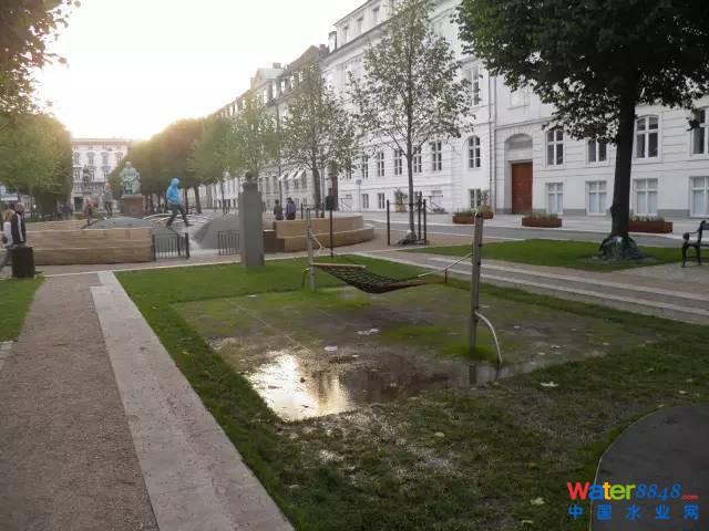哥本哈根的圣·安娜廣場的一處下凹式綠地,下雨時起到蓄積雨水的作用。董彩霞
