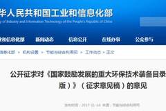 《國(guó)家鼓勵(lì)發(fā)展的重大環(huán)保技術(shù)裝備目錄(2017年版)》(征求意見(jiàn)稿)日前,工信部印發(fā)《國(guó)家鼓勵(lì)發(fā)展的重大環(huán)保技術(shù)裝備目錄(2017年版)》(...