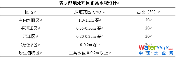 濕地處理區(qū)水深設(shè)計(jì)包括正常水深設(shè)計(jì)和調(diào)蓄水深計(jì)算。