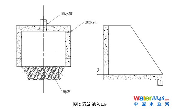 沉淀池入口設(shè)置100mm粒徑礫石消能。入口示意圖如圖2所示。