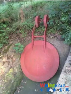 福壽溝排水系統(tǒng)具有強大的雨洪調(diào)蓄能力,在正常運行期間,從未有過水患,這得益于古人尊重自然、疏而不堵的治水理念。福壽溝排水系統(tǒng)的調(diào)蓄功能由城墻、福壽溝、水塘完成。贛州古城三面環(huán)水,江水上漲淹城時,一方面城墻具有防護功能,另一方面福壽溝末端排水口的“拍門”(古代為木制現(xiàn)改為鐵制,如圖3所示),可在江水淹沒排水口時自動閉合,防止江水倒灌入福壽溝,而在平時水流可將其沖開正常排水,構思十分巧妙。水塘在城市生態(tài)系統(tǒng)的循環(huán)過程中,起著調(diào)節(jié)氣溫、改善氣候、美化環(huán)境、防澇排水的作用。福壽溝連接起城內(nèi)上百口大小池塘,其末端通往城墻各處將水排入江中。由此,城墻防護,池塘儲水,福壽溝連通疏導,三部分各司其職,互相配合,實現(xiàn)暴雨時江水上漲,城內(nèi)雨水通過福壽溝排入池塘,洪峰過后再從池塘排入江中的功能,保證暴雨時路面不積水,居民正常生活。