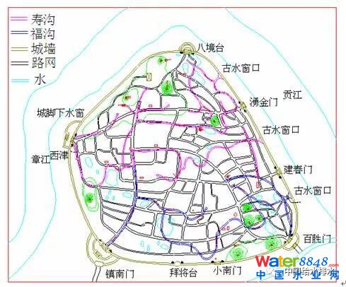 福壽溝排水系統(tǒng)是防淹防澇之作。自1077年建成至今,在近千年歷史長河中,經(jīng)贛州古城官民的精心維護,它保護著古城的居民,至今依然有部分溝渠服務于古城人民。福壽溝排水系統(tǒng)不僅成為當?shù)鼐用窠蚪驑返啦橹湴恋拇嬖,還作為展現(xiàn)古人的高瞻遠矚與蘊藏宋代點滴文化的歷史遺跡,供人研究,使人敬仰。2016年8月22日,總理來贛州考察,參觀福壽溝時,稱贊道“福壽溝防洪排澇,造福百姓、延壽千秋”,今天我們也要建設“經(jīng)得起歷史檢驗的城市良心工程”。為緩解城市內(nèi)澇,我國提出了海綿城市建設理念。至今開展海綿城市建設工作已有兩年多時間,一系列問題也隨之而來。為此,借鑒我國古代排水工程的成功經(jīng)驗,不僅可以豐富海綿城市建設理念,而且可以增強信心,堅定原則,少走彎路,建設更加完善的民生工程。