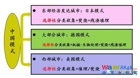 最后我總結(jié)一下我國生活垃圾處理技術(shù)的一些展望。目前國際上的生活垃圾處理技術(shù)路線,無非有這么幾種模式:一是日本模式,嚴格分類收集,差不多全量收集+焚燒+殘渣填埋;二是德國模式,分類收集+機械-生物處理+焚燒+殘渣填埋;三是美國模式,要么填埋,要么焚燒。我們中國是什么模式?中國也是一個大國,能不能有我們自己的模式?這值得思考。