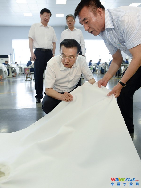 24日,山東德州景津環(huán)保股份有限公司負(fù)責(zé)人向前來考察的李克強(qiáng)遞上自己的名片,名片上寫著“化污水為清泉,化污泥為資源”?偫韺(duì)這一理念十分肯定。他說,山東今年干旱,你們做的事既有經(jīng)濟(jì)效益又有社會(huì)效益,既為國家做貢獻(xiàn),也造福了你們的老家和百姓。