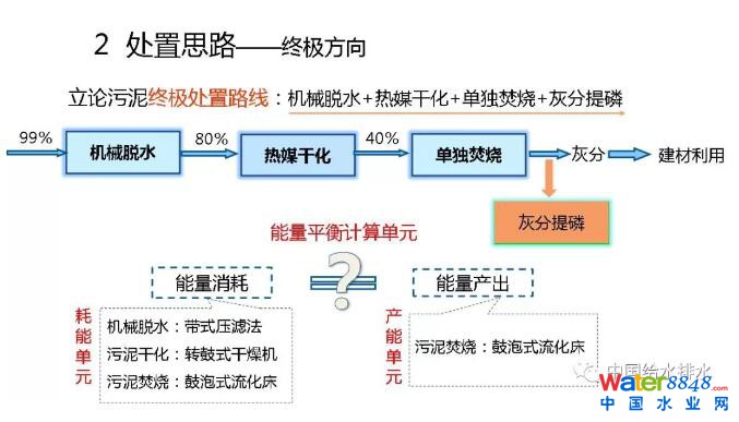 因此,最后只有去“燒”!但是,“燒”必須要經(jīng)過機(jī)械脫水,含水率99%的污泥首先降至80%;然后,再熱干化到40%以下。到40%就可以自持燃燒了。燒,但污泥焚燒千萬不能放在水泥窯中同水泥一塊燒。這樣不對(duì)。會(huì)把磷就全部固定在水泥里,磷再也不能回用了!所以,要單獨(dú)燒。最多可以跟有機(jī)垃圾一塊燒。燒完以后,大量的磷都在灰分里面,需要提取。當(dāng)然了,大家知道,脫水、熱干化、單獨(dú)焚燒都是要輸入能量的,當(dāng)焚燒之后也會(huì)產(chǎn)生能量,F(xiàn)在我們有一個(gè)問題,就是輸入能量和產(chǎn)生的能量能否達(dá)到平衡?我們需要計(jì)算一下,如果能打個(gè)平手那就是很了不起的事了。