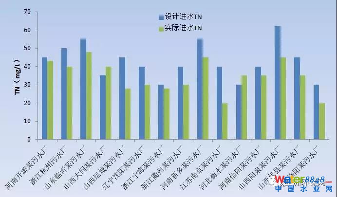 我們做了一些實(shí)際污水廠(chǎng)的進(jìn)水設(shè)計(jì)值與實(shí)際值的比較,可以看出從南到北很多污水處理廠(chǎng)的COD設(shè)計(jì)值與實(shí)際值有較大的差距,實(shí)際進(jìn)水COD遠(yuǎn)遠(yuǎn)低于設(shè)計(jì)值,只有50%左右,氮的值也會(huì)低一些,但低的并不是很多。所以,很多污水處理廠(chǎng)的池容是有冗余的,這種冗余的潛力在升級(jí)改造時(shí)就可能得到利用,當(dāng)然這會(huì)涉及到其他單元的問(wèn)題,比如沉淀池的問(wèn)題、進(jìn)水管線(xiàn)的問(wèn)題等等,需要進(jìn)行實(shí)際評(píng)估。