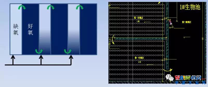 水力的優(yōu)化實(shí)際上涉及的面比較多,這里僅從DO對(duì)厭氧、缺氧的影響、進(jìn)水與回流污泥、混合液回流的混合、反應(yīng)池部分區(qū)域的短流簡(jiǎn)單舉兩個(gè)例子。比如,在厭氧池設(shè)計(jì)的時(shí)候,往往是進(jìn)水管、回流污泥口一起進(jìn)入?yún)捬鯀^(qū),實(shí)際上比較好的做法設(shè)置一個(gè)混合區(qū),讓污泥與水進(jìn)行充分的混合。另外,進(jìn)水是要從底部、上部同時(shí)進(jìn),這樣的話(huà)降低了進(jìn)水帶入的DO。