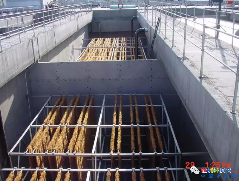 IFAS工藝有固定式填料和移動(dòng)式填料,兩種形式各有利弊,固定式填料改造起來(lái)相對(duì)簡(jiǎn)單,有的以框架的形式直接放在曝氣池中,其他需要考慮的環(huán)節(jié)較少,但固定式填料容易滋生蠕蟲(chóng),需要定期采取措施清除。下面這個(gè)圖是北京某污水處理廠(chǎng)采用的固定式填料的IFAS工藝,改造后的效果很好。