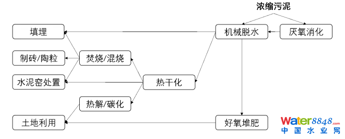 圖3 基于最終出路的污泥主要處理處置流程