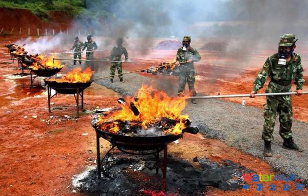 中國警方銷毀繳獲的毒品。 新華社  圖