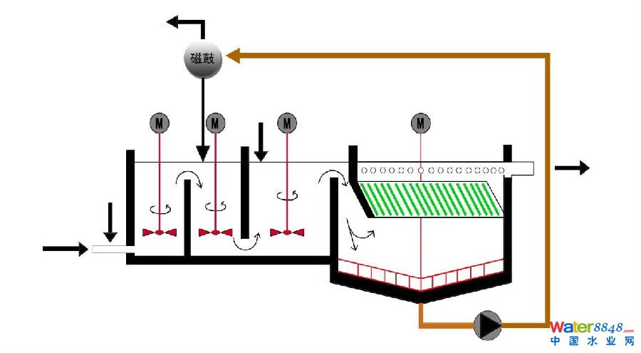 油水密度差較小的情況下,采用傳統(tǒng)的工藝去除重油很難達(dá)到理想的效果。通過加藥將油和懸浮物形成礬花,再投加磁粉負(fù)載在形成的礬花上,可以有效解決重油去除問題。磁粉通過磁鼓進(jìn)行回收可以重復(fù)利用