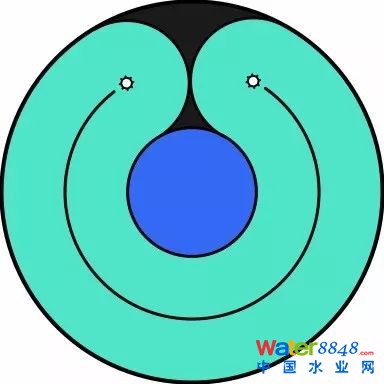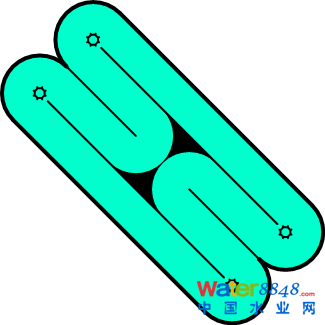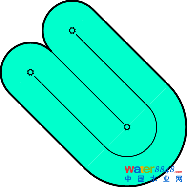 雖然卡魯塞爾氧化溝安裝表曝機的位置是有限和固定的,但池型的變化卻很豐富。需要指出,在上面的某些布置中,渠道直線段是可以彼此不一樣的,因此實際工程中的平面組合還會更多。后面將要提到的DHV Carrousel® 2000系統(tǒng)的平面布置就是采用了長度不等的渠道直線段,從而為前置缺氧池或厭氧池留出空間。記得曾在美國聽到過這樣一個笑話:一位年輕氣盛的工程師在設(shè)計卡魯塞爾氧化溝時,面對過于苛刻的設(shè)計條件和要求,發(fā)泄怨氣般地把其中一組渠道的直線段拉長,使整個平面看起來更像豎起的中指。。。這雖然只是一個笑話,但卻折射出了卡魯塞爾氧化溝在平面布置方面的靈活與多變。
