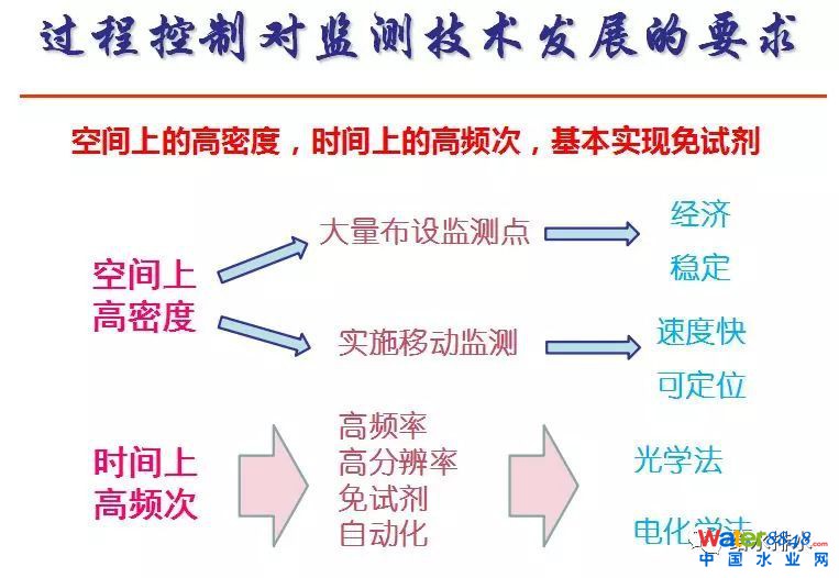 結(jié)合到更高標(biāo)準(zhǔn)的要求有一些新的監(jiān)測技術(shù)和控制技術(shù)發(fā)展。從運行角度,我們是希望有更大量數(shù)據(jù)能夠?qū)崟r準(zhǔn)確告訴我們這個系統(tǒng)狀態(tài)是什么樣。所以一個是在空間密度上可能要增加測試,在時間頻次上也要增加測試。既然這樣要求,就有兩方面,一方面就說我這個儀器比較廉價,經(jīng)濟穩(wěn)定,能夠快速測定。還有,如果頻次增高,最好是免試劑頻次。