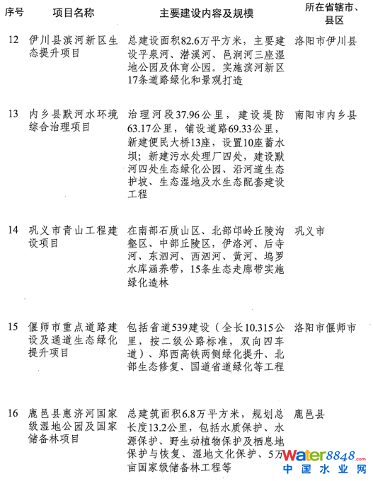 生態(tài)環(huán)保項目共計46項,水利項目19個。