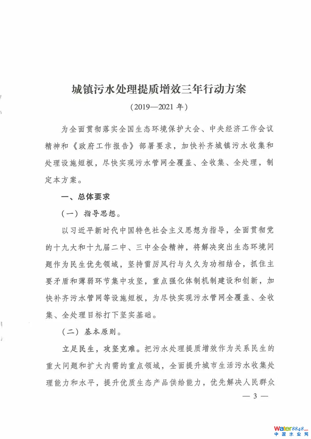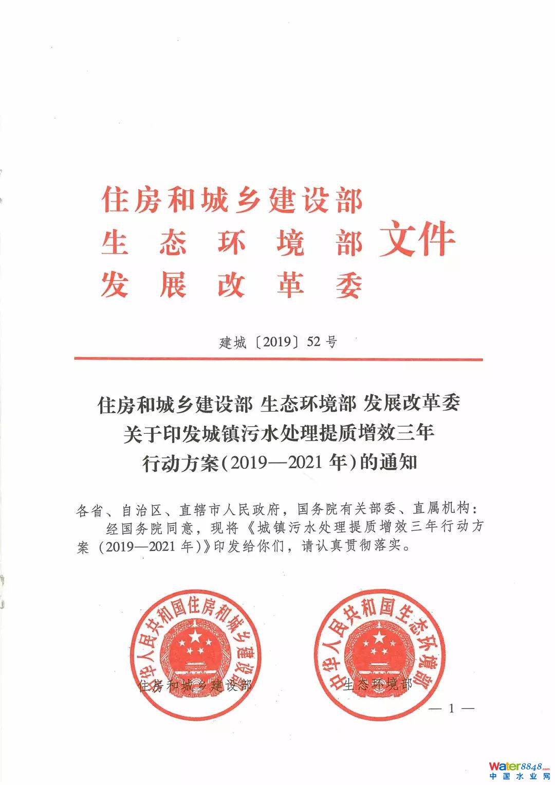 住房和城鄉(xiāng)建設(shè)部、生態(tài)環(huán)境部、發(fā)展改革委印發(fā)《城鎮(zhèn)污水處理提質(zhì)增效三年行動(dòng)方案(2019-2021年)》