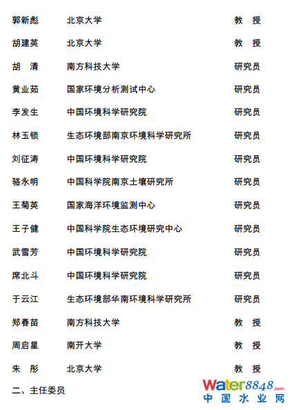 首屆國家生態(tài)環(huán)境基準專家委員會委員名單