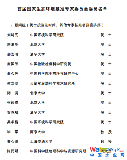 首屆國家生態(tài)環(huán)境基準專家委員會委員名單 來源:生態(tài)環(huán)境部