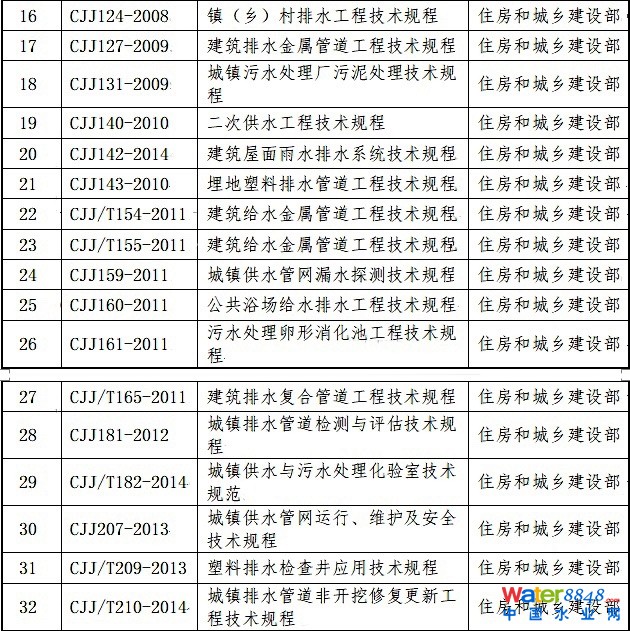 • 現(xiàn)行給水排水行業(yè)標準名錄