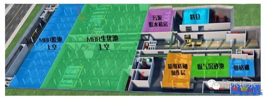 節(jié)約土地:由于采用高效處理技術(shù)的集成化設(shè)計,地下污水廠占地面積僅為地上式的 1/3左右。在我國南方污水廠進(jìn)水濃度低, 采用MBR工藝占地約0.2m2/m3水,在北方地區(qū)占地會稍高些。 采用A/O+深度處理工藝占地可控制在0.3m2/m3左右。