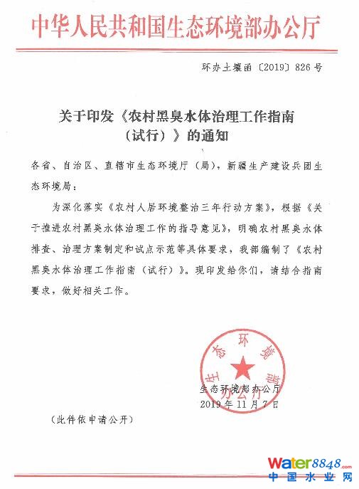 日前,生態(tài)環(huán)境部辦公廳發(fā)布《關(guān)于印發(fā)<農(nóng)村黑臭水體治理工作指南(試行)>的通知》(環(huán)辦土壤函〔2019〕826號(hào))。詳情如下: