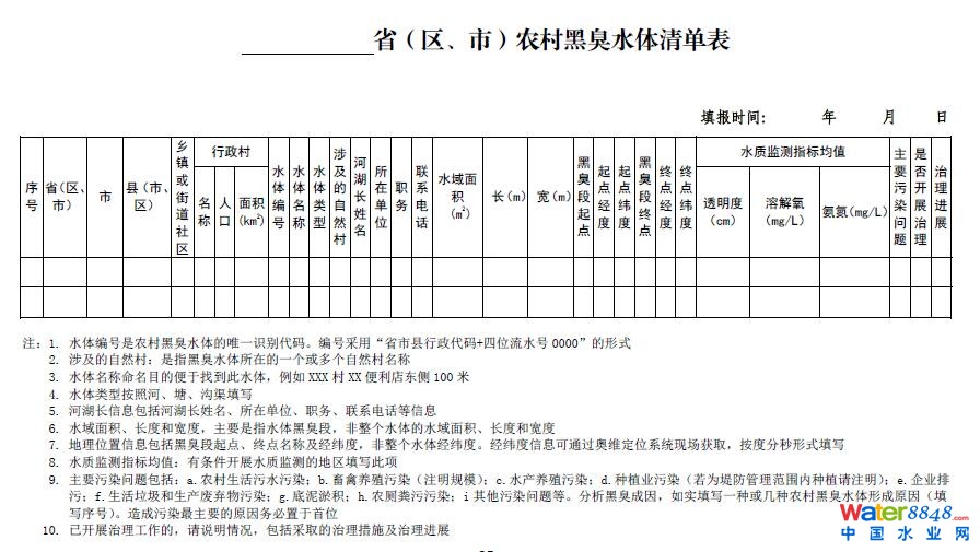 在摸清底數(shù)的基礎(chǔ)上,各省(區(qū)、市)組織完成農(nóng)村黑臭水體清單編制工作,并向社會(huì)公開(kāi)。按照附件1 和附件2 分別進(jìn)行農(nóng)村黑臭水體數(shù)量匯總統(tǒng)計(jì)和農(nóng)村黑臭水體清單報(bào)送。