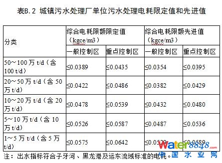 城鎮(zhèn)污水處理能耗限額限定值和先進值見表3.0.2。