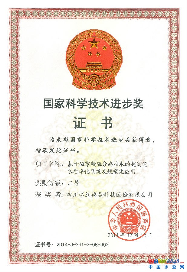 環(huán)能科技取得國家科學(xué)技術(shù)進(jìn)步二等獎證書