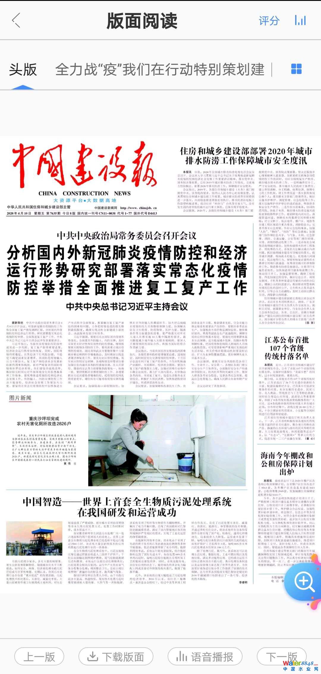 關(guān)于我公司生產(chǎn)制造的OP CS50處理器于2020年4月8日登入“中國(guó)建設(shè)報(bào)”