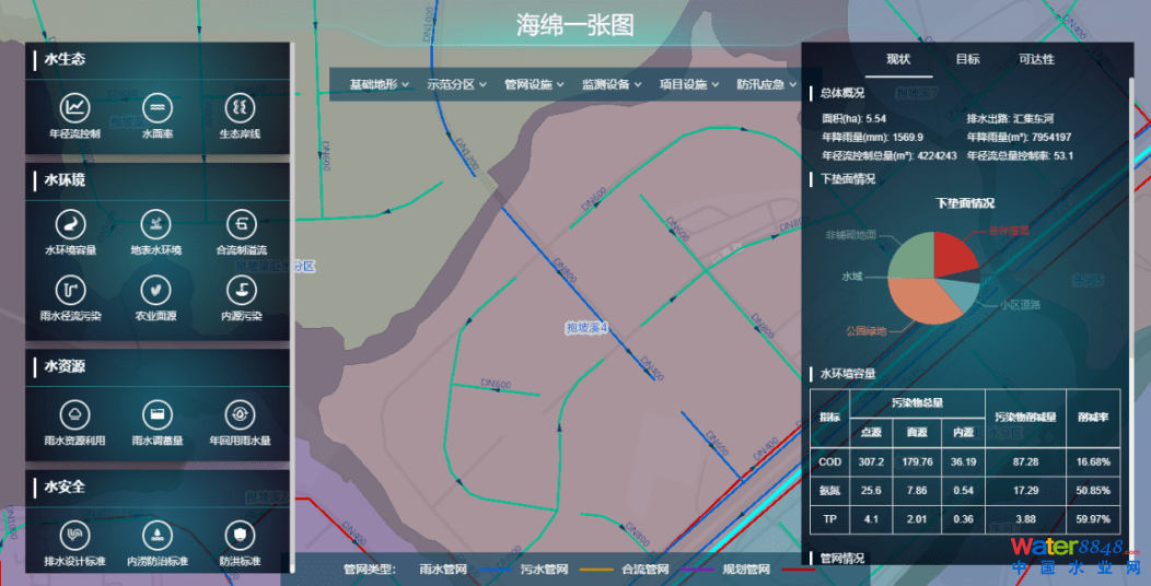 一、構(gòu)建了一套全指標(biāo)、全過程、全覆蓋、全方位服務(wù)三亞海綿城市建設(shè)的信息化服務(wù)平臺,實現(xiàn)了三亞海綿城市從規(guī)劃、設(shè)計、施工到運(yùn)營全生命周期的智慧化評估和管控。