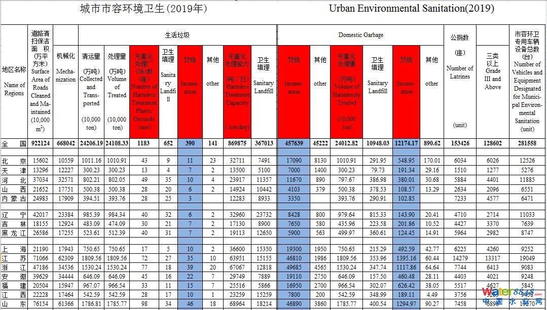 2020年12月31日,住房和城鄉(xiāng)建設(shè)部發(fā)布《2019年城市建設(shè)統(tǒng)計年鑒》和《2019年城鄉(xiāng)建設(shè)統(tǒng)計年鑒》公布了全國生活垃圾無害化處理廠及污水處理廠情況。整理如下: