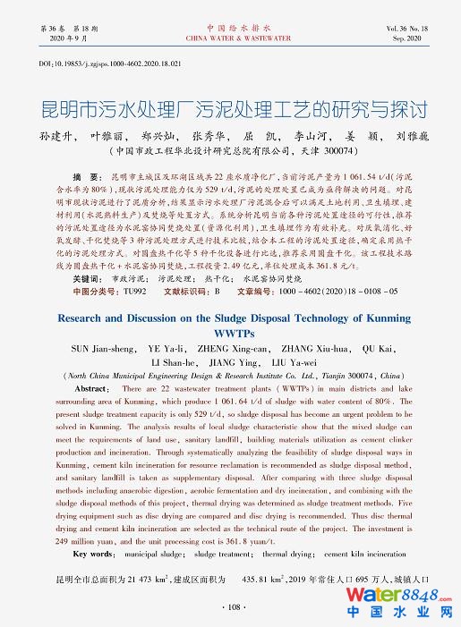 關(guān)鍵詞:污泥處理 水質(zhì)凈化廠 昆明