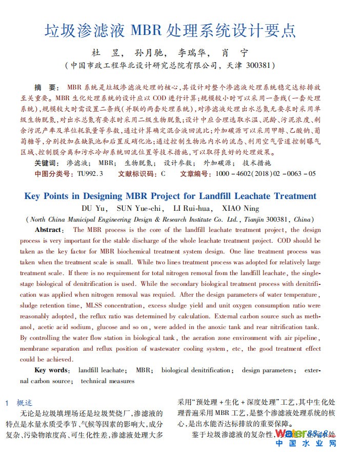 垃圾滲濾液MBR處理系統(tǒng)設(shè)計(jì)要點(diǎn) 來源:《中國給水排水》 作者:杜昱等