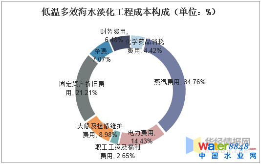 對于1萬t/d的低溫多效海水淡化工程,占總成本比例最高的分別為:蒸汽費用、固