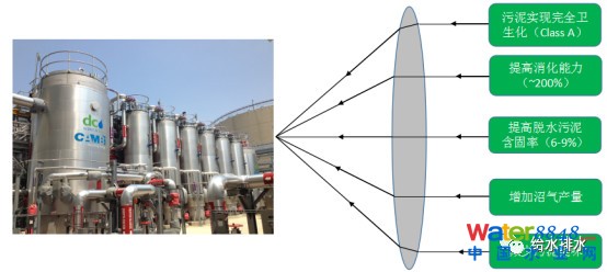 通過熱水解之后污泥消化的效能得到顯著提高,厭氧消化的時(shí)間大為縮短,進(jìn)入消化池的污泥濃度大幅度提高,消化池的池容可以減半,同時(shí)提高脫水污泥含固率,增加一定比例的沼氣產(chǎn)量,減少污泥臭味,這項(xiàng)技術(shù)將多項(xiàng)功能密集化集中在一個(gè)單元上。