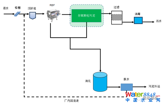 那么好氧顆粒污泥的技術(shù)密集化體現(xiàn)在以下幾個(gè)方面,首先是占地面積比較小,可以節(jié)省占地面積75%,另外能耗可以節(jié)約25~35%。