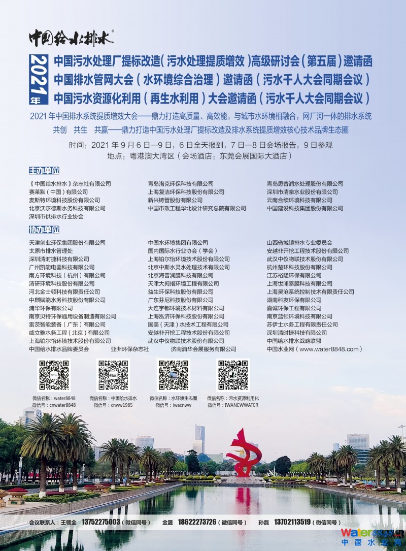 中國(guó)污水千人大會(huì)參觀項(xiàng)目之一: 云南合續(xù)環(huán)境科技股份有限公司  ?谑形鞅捞端|(zhì)凈化中心 中國(guó)給水排水 Water Insight直播:劉銳平  清華大學(xué) 環(huán)境學(xué)院 教授 博士生導(dǎo)師—高濃度硝酸鹽廢水反硝化脫氮過程強(qiáng)化原理與應(yīng)用 會(huì)議時(shí)間:2023.1.7(周六)10:00—11:00