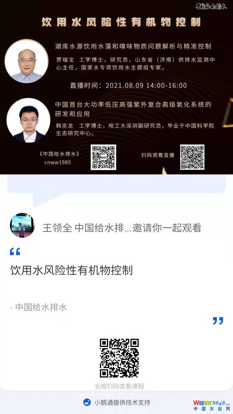 技術(shù)沙龍 | 先進(jìn)水技術(shù)博覽(Part 11) 直播時(shí)間:8月19日(周六)上午10:00-12:00 2023-08-19 10:00:00  廣東匯祥環(huán)境科技有限公司  湛蛟  技術(shù)總監(jiān)  天津萬(wàn) 中國(guó)水業(yè)院士論壇-中國(guó)給水排水直播平臺(tái)(微信公眾號(hào)cnww1985):自然—社會(huì)水循環(huán)與水安全學(xué)術(shù)研討會(huì)