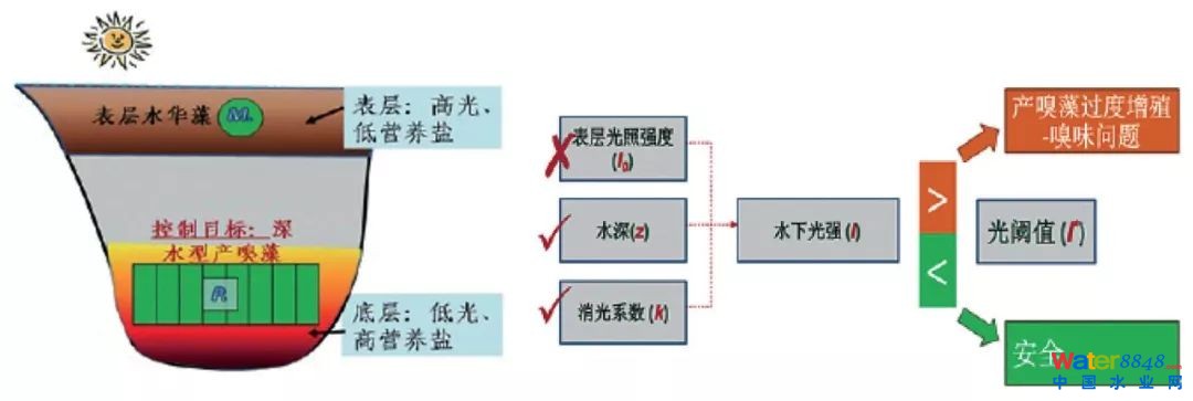 圖6 基于光調(diào)控的水庫(kù)產(chǎn)嗅藻調(diào)控技術(shù)原理示意圖