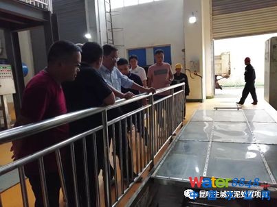 4、張悅理事長(zhǎng)查看離心脫水機(jī)運(yùn)行情況,指出應(yīng)嚴(yán)格控制上清液相關(guān)指標(biāo),避免造成配套污水處理廠進(jìn)水負(fù)荷過(guò)大。