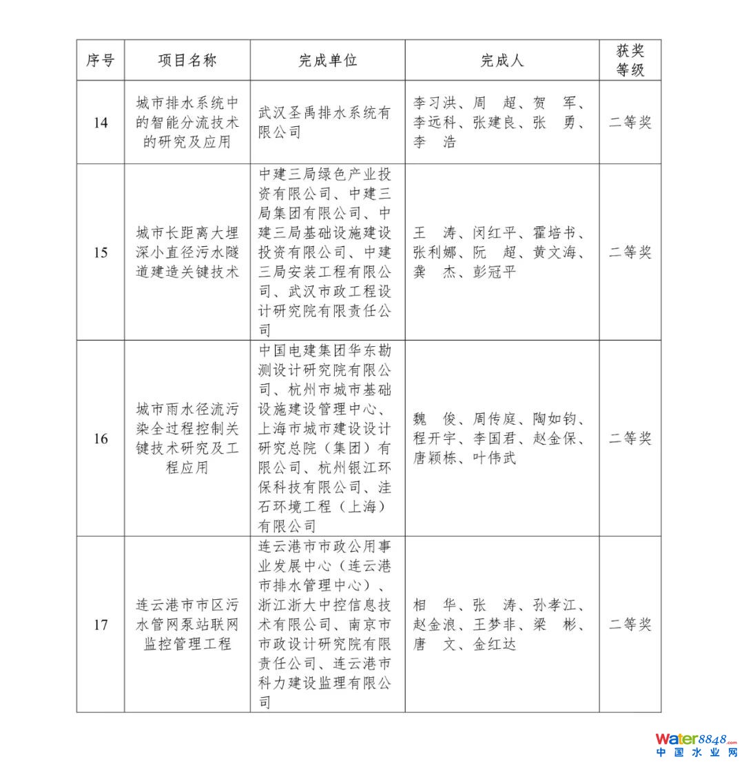 根據(jù)《中國(guó)城鎮(zhèn)供水排水協(xié)會(huì)科學(xué)技術(shù)獎(jiǎng)勵(lì)辦法(試行)》,經(jīng)中國(guó)城鎮(zhèn)供水排水協(xié)會(huì)(以下簡(jiǎn)稱中國(guó)水協(xié))科技評(píng)審委員會(huì)評(píng)審、獎(jiǎng)勵(lì)委員會(huì)審定,中國(guó)水協(xié)審核批準(zhǔn),2021年度授獎(jiǎng)項(xiàng)目共17項(xiàng),其中特等獎(jiǎng)1項(xiàng)、一等獎(jiǎng)6項(xiàng)、二等獎(jiǎng)10項(xiàng)(見附件)。中國(guó)水協(xié)將在“中國(guó)水協(xié)2022年會(huì)”舉行頒獎(jiǎng)儀式,對(duì)獲獎(jiǎng)項(xiàng)目予以表彰。